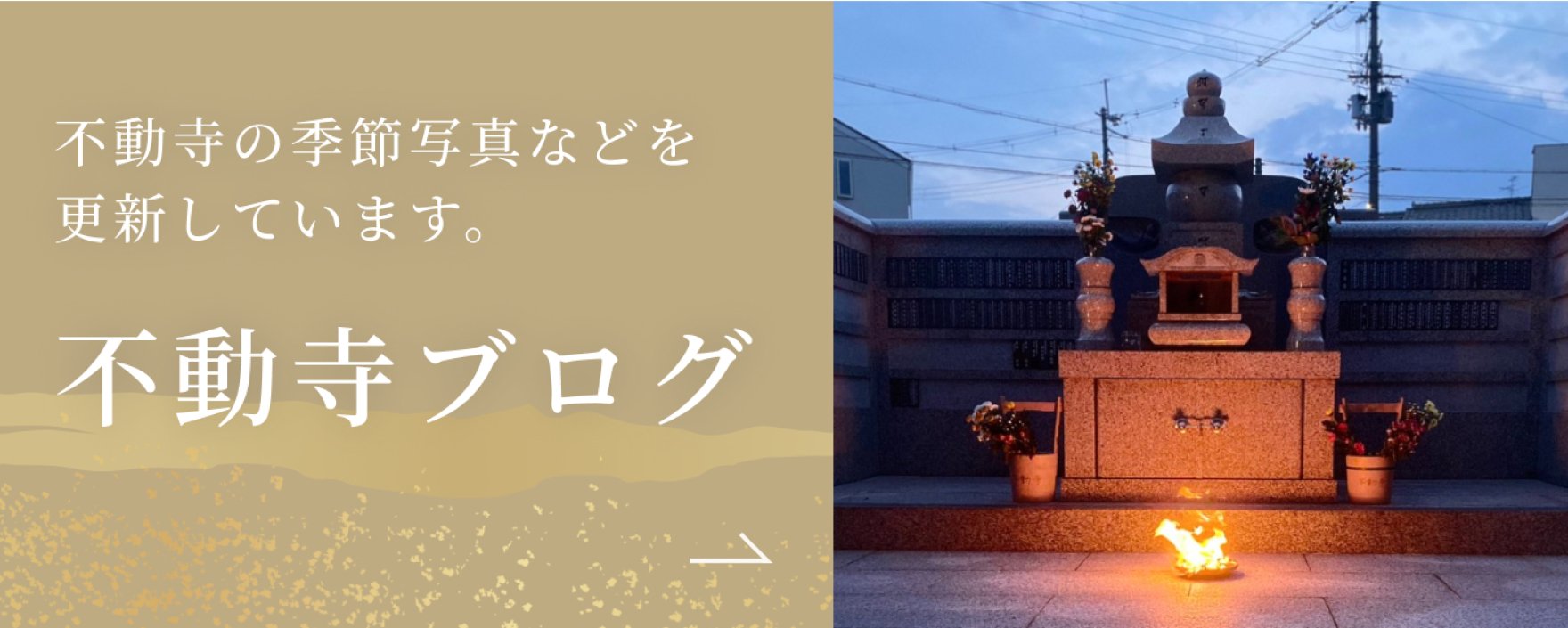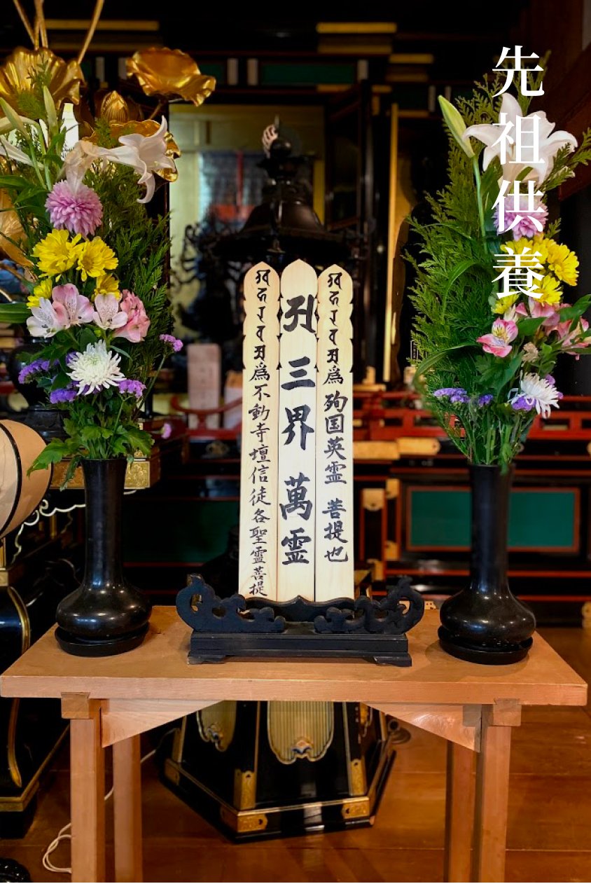 墓地は本堂の真後ろに位置しており、毎日のおつとめの声が墓地にも聞こえます。 納骨前の宗派や宗旨に制限はありませんが、納骨後は不動寺の祭祀にお任せください。 年忌法要や法事には、本堂・客殿、駐車場がご利用いただけます。